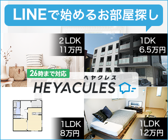 チャット不動産「ヘヤクレス」はスキマ時間でLINEでお部屋探しができます。毎日物件を提案してくれるだけでなく、26時までチャットで相談もでき、かつ利用料金も無料です。